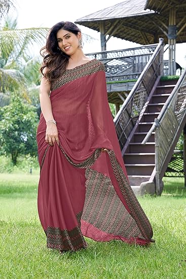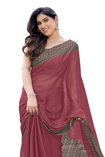 MIRCHI FASHION Women’s Stylish Chiffon Contrast Border-Pallu Printed Saree with Blouse Piece