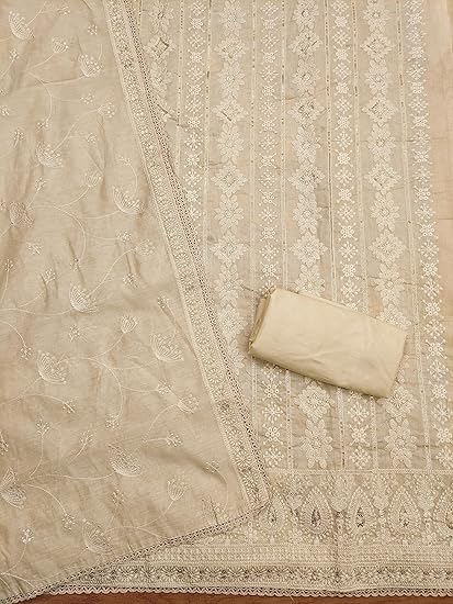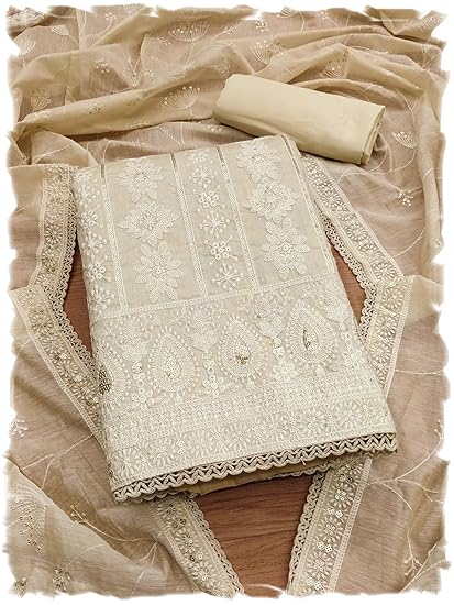 Pandadi Saree Women’s Elegant Lucknowi Work with Modal Cotton Chanderi and Embroidered Dupatta Unstitched Dress Material
