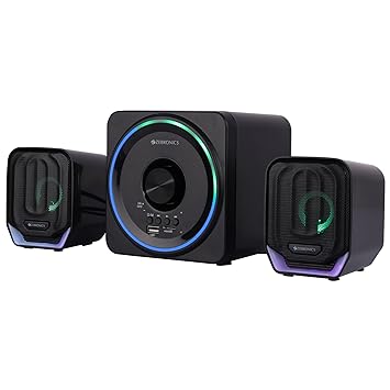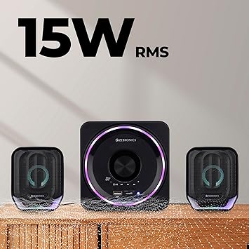 ZEBRONICS Pluto 2-2.1 Channel Desktop Speaker with 15 watts Output, Bluetooth 5.0, USB, mSD, FM, 3.5mm Jack Line Input, Inbuilt Volume Control, USB Powered, RGB Lights