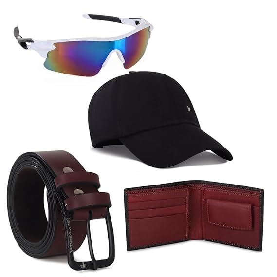 ZXR 4pcs/Set Men’s Gift Set Men and Boys Cap & Sunglasses Belt Wellet Combo Set Birthday Present |Designer Cap | Men Women | Cap for Unisex | Adjustable Cap | Baseball Cap, Pack of 4 Multicolour